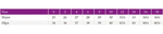 | Chest | 31-34 | 34-37 | 38-41 | 42-45 | 46-49 | 50-53 | 54-57 |